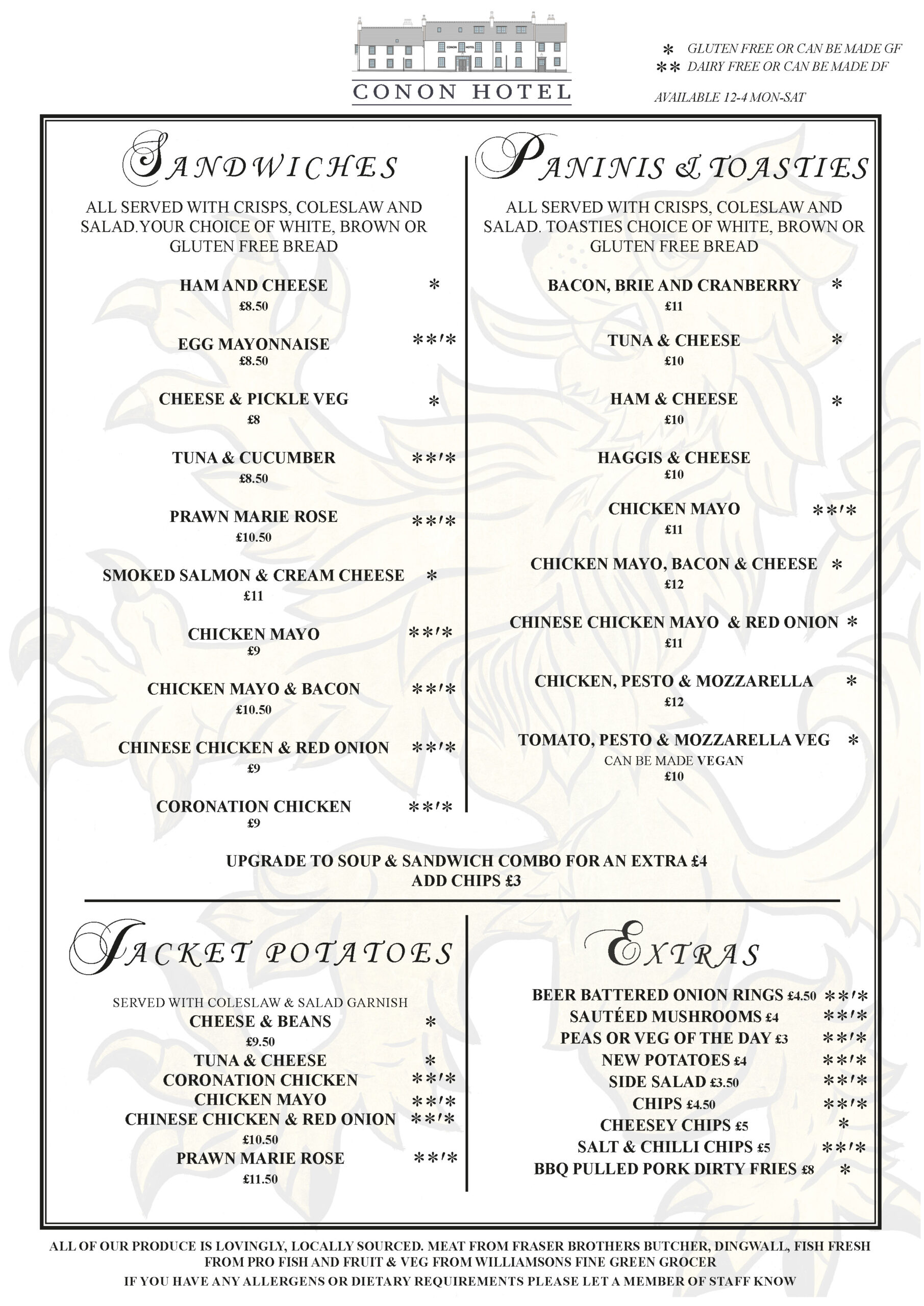 Lunch Menu 12-4pm